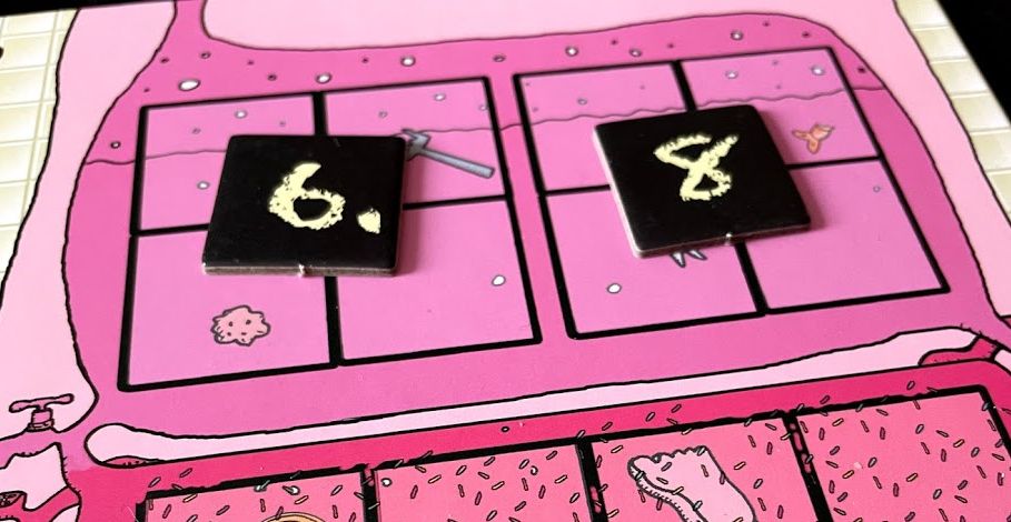 The victory point tiles were only printed on one side (the other was a stylized background), but I didn’t see a situation where having them face-down would be useful. This resulted in some annoyance, flipping some over to see their number.