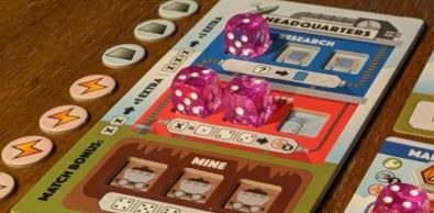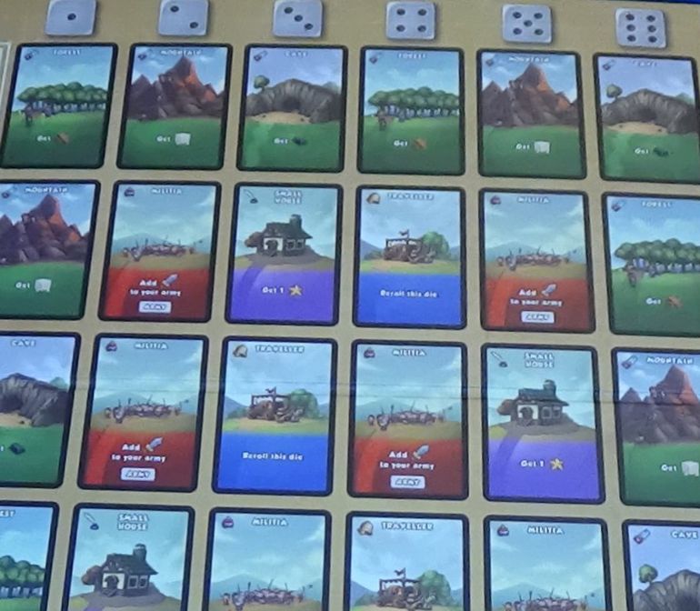 In general, we avoid any games with maps, tile laying, polyominoes, and overlapping cards. There are exceptions. We do play games that have grids for maps – for example, Dice City – and we play some tile laying games with very simple grids and tiles, like Overboss. As mentioned previously, these games have no hidden information, so I can help Will manipulate his board.