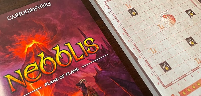 Nebblis: Plane of Flame introduces a volcano to the map and adds 3 volcano cards that requires lava-like destruction of spaces adjacent to the volcano or to other lava-destroyed spaced on the map. Different than Ambush or Heroes cards, the volcano cards stay in the deck for the entirety of the game, which can result in a lotta lava.