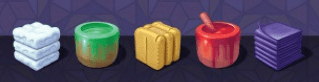The Cards. For this modification I did not mark up the cards, which remain colored squares that provide the blueprint/recipe for each building’s resources and their configuration. This makes my mod incomplete, as a fully colorblind person would need to add symbols or fully replace the art with shaped symbols representing the resources.