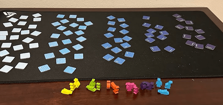 To overcome the color vision barriers I experienced in Deep Dive, I modified some of the tile and meeple components.