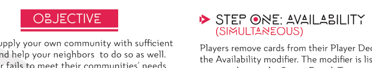 Game Boards. The shared game board tracks player status/score and game turns. It features bright colors and high contrast in most spaces. The white-on-yellow spaces have lower contrast and might be difficult for some low-vision players, but it worked just fine for me. Individual players boards match the theme, providing unique color and icons for each community. I also liked the verticality used for the UNMET token (see image on the right). Players not able to meet their own resource needs seek help from others, so the vertical indicator makes it easy to look across the table to identify who needs fish, corn, or bison.