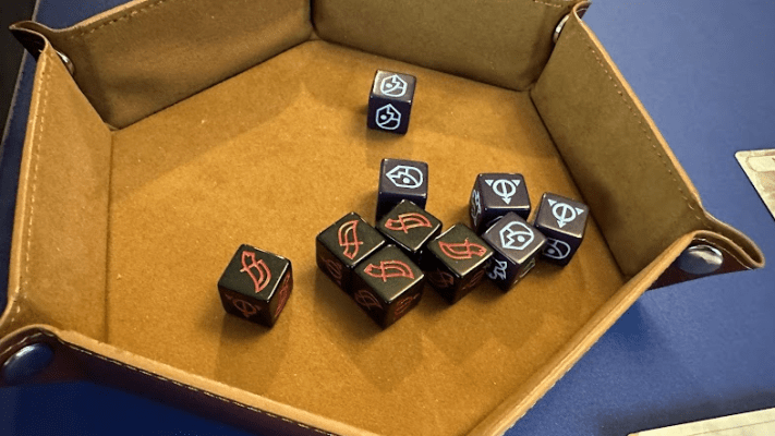 - Size. Some other games are moving toward big, chunky dice (I’m not a fan), so I appreciate the standard size, especially when rolling 10 in a dice tray.